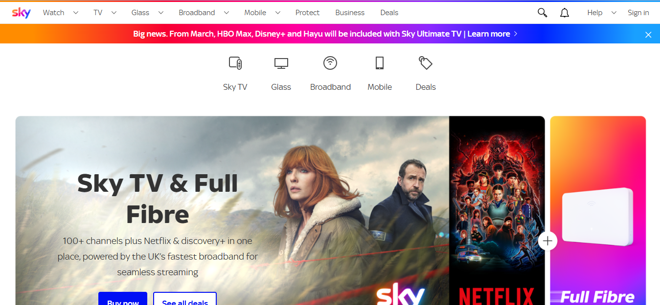Sky is the most established name in UK television. Through Sky Glass and Sky Stream, you now get Sky’s full channel range delivered entirely over broadband, no dish needed. You get exclusive sports, entertainment, and on-demand content all in one place. It’s the premium option and priced to match, but for many households it remains the benchmark everything else is measured against.